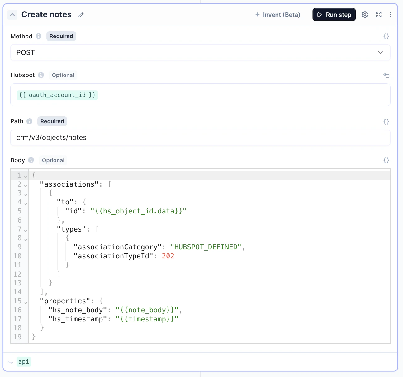 Besides triggering your agent to start working from HubSpot, you can also use the HubSpot API call step in the Tool builder. This tool step allows your agent to complete HubSpot-specific activities, like managing Contacts, Notes, Tasks and more.Use HubSpot API tool-step